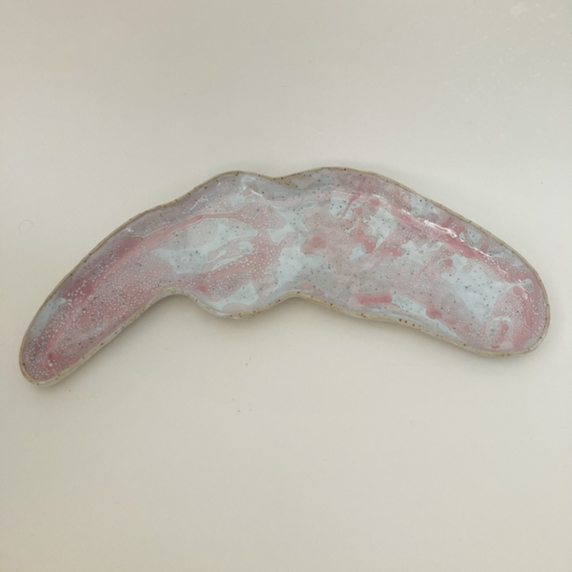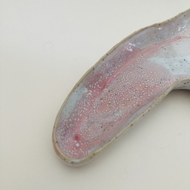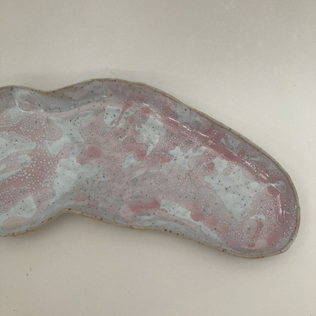 Plat "lac Léman" en grès avec pyrites émaillé. Dimensions. environ 30cm x 15cm.
