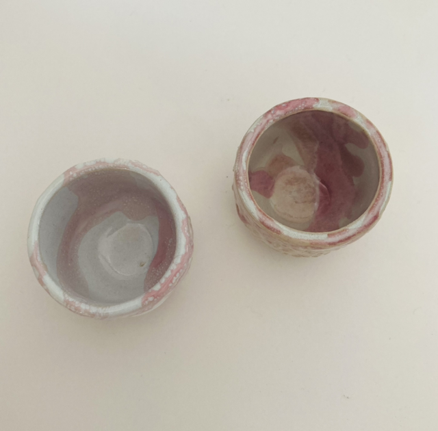 Petit pot en grès émaillé (max. 30ml). Dimensions: environ H 4cm x Diamètre 4.5cm.